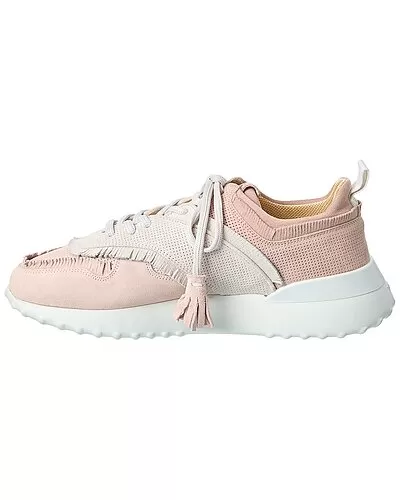 - Sport Suede Sneaker in pink suede & fabric with fringe lace detail