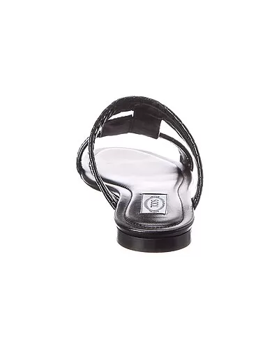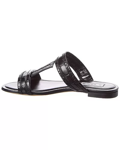 - T Strap Croc-Embossed Leather Sandal in black croc-embossed leather with logo straps