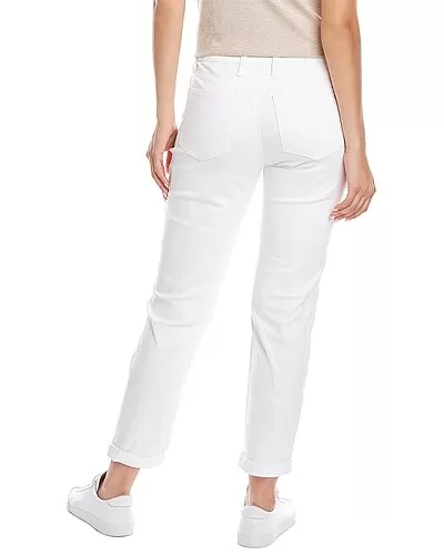 - Ella Twill Slim Boyfriend Jean in white with belt loops and classic five-pocket styling