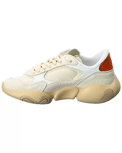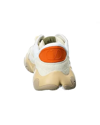 - Leather & Mesh Sneaker in white and orange leather, suede and mesh with VLogo accent and chunky sole