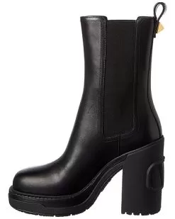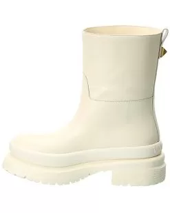 - Rockstud Leather Bootie in rose leather with platinum-finish rockstuds