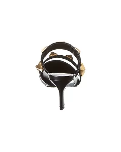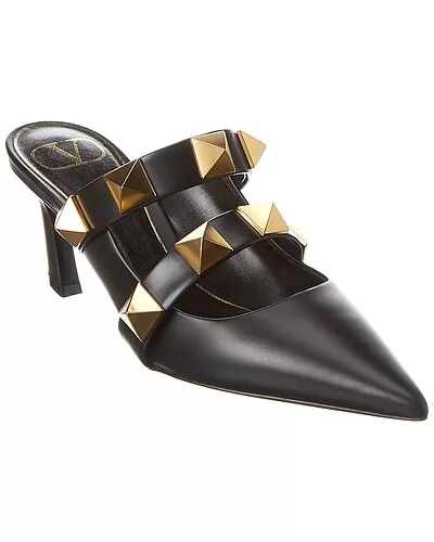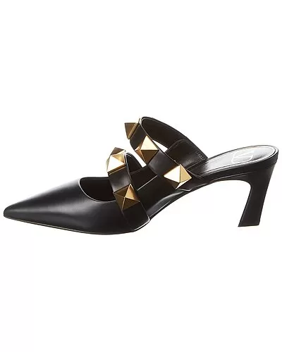 - Roman Stud 65 Leather Mule in black leather and gold-tone hardware with Roman studs