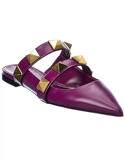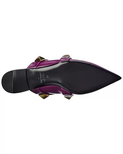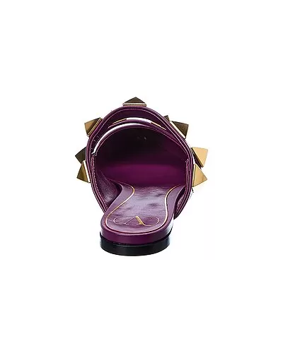 - Roman Stud Leather Flat in purple leather and gold-tone hardware with Roman studs