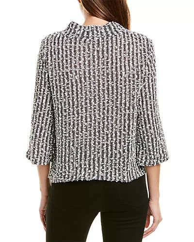 - Elbow Sleeve Top in rich black with textured design, mock neck and side slits at hem
