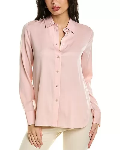- Slim Fitted Silk-Blend Blouse in petal clay with button cuffs and box pleat at back
