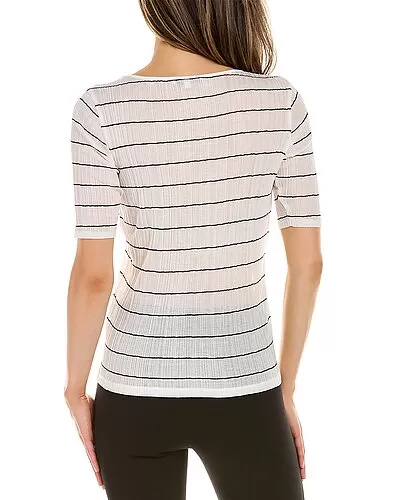 - Striped Rib Square Neck Top in off white/coastal with ribbed design, square neckline and elbow-length sleeves
