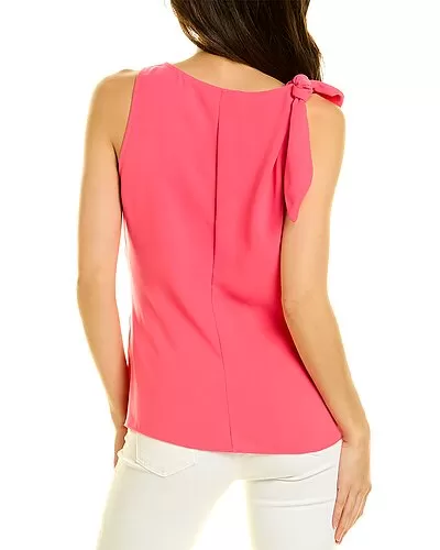 - Wailua Top in watermelon with draped wrap front and knotted right shoulder